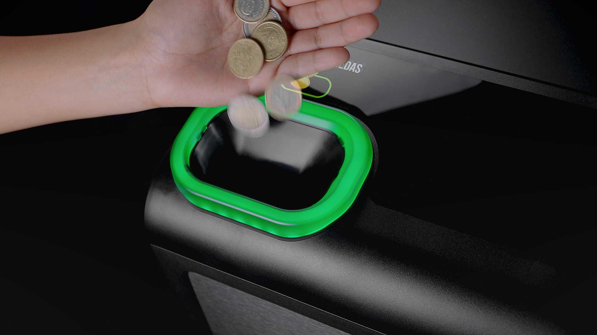 3 unidades recicladoras de hasta 50 billetes (dependiendo de la denominación). Stacker de recaudación con capacidad hasta 500 billetes..